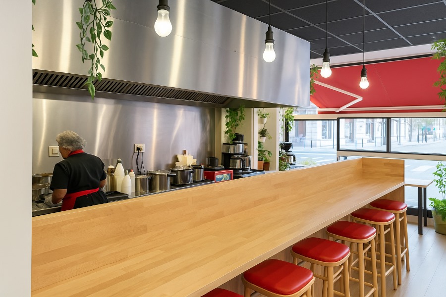 Quartier du stade Chaban-Delmas, fonds de commerce de restauration à vendre dans un local commercial d'environ 50m² climatisé et en bon état. Cuisine équipée et aménagée, extraction aux normes, potentiel de développement important.