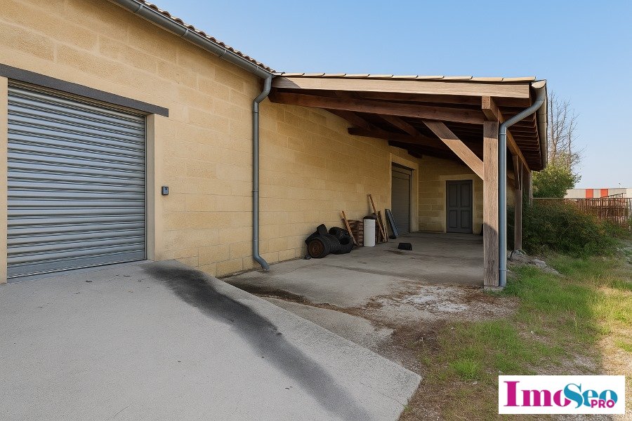 Sortie n°43 de l'A10, à proximité de la zone commerciale St Eulalie et du Bâti Leclerc, sur une parcelle privative de 630m² avec parking, dans un immeuble en pierre, atelier showroom d'environ 200m² au sol équipé de 2 portes sectionnelles 2x2,50 mètres et 2 rampes d'accès. HSP 3.43m, dalle béton. Possibilité stockage extérieur. Stationnement privatif.