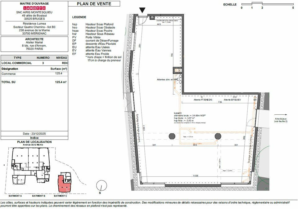 LAMOTTE ENTREPRISES & COMMERCES vous propose, au rez-de-chaussée de la résidence LUMÉA, un local à destination de crèche de 125 m².