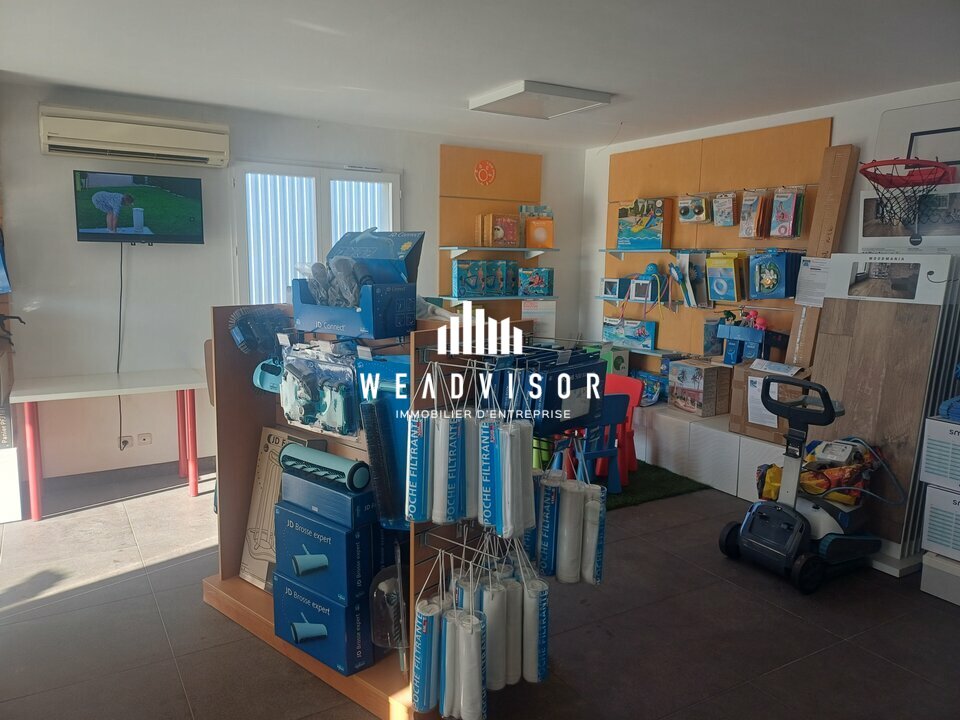 Il comprend une grande surface de vente avec coin bureau, un local technique / rangement, un bureau en fond, ainsi qu'une zone de vie avec cuisine et point d'eau.