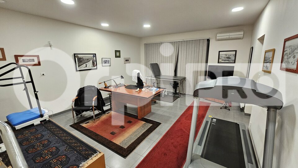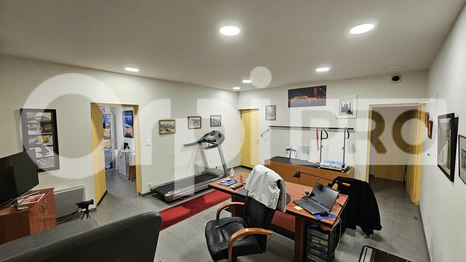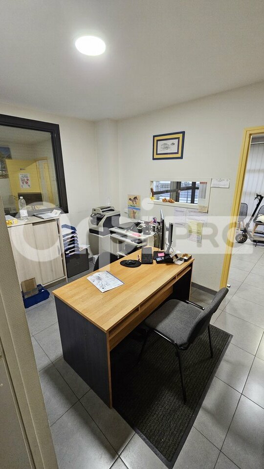Il comprend un hall d'accueil/salle d'attente avec sanitaire PMR, une salle d'archives, un vaste bureau de 27 m² équipé d'un point d'eau, ainsi qu'un second bureau de 10 m² disposant d'un local annexe de 7,60 m² à l'arrière.