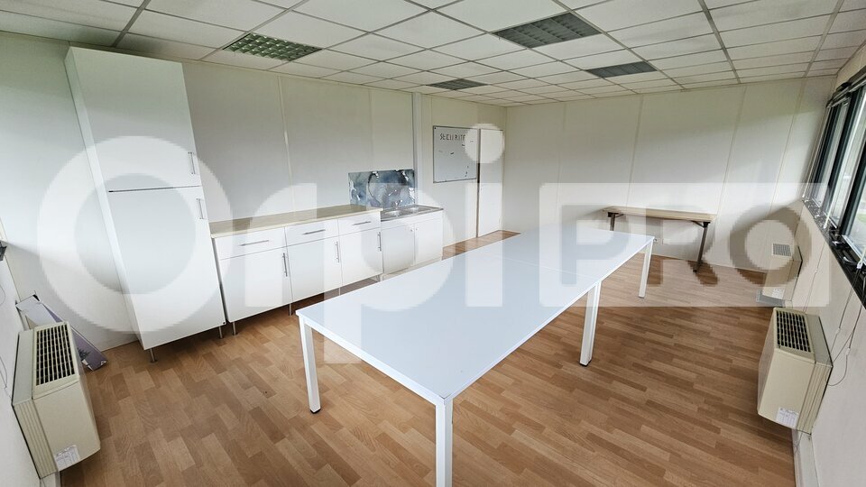 Le plateau comprend également une salle dédiée aux archives et à la baie de brassage, ainsi qu'un bureau aménagé en kitchenette / espace de pause avec évier, placards et réfrigérateur, idéal pour le confort des collaborateurs. Les prestations techniques sont complètes : climatisation réversible, chauffage, moquette en très bon état, éclairage LED sous faux plafond, double vitrage avec stores, prises électriques réparties et fenêtres à double poignée permettant une ouverture basse vers l'extérieur. Les sanitaires hommes/femmes sont situés dans les parties communes du R+1, tout comme l'accès à l'ascenseur, garantissant praticité et accessibilité.