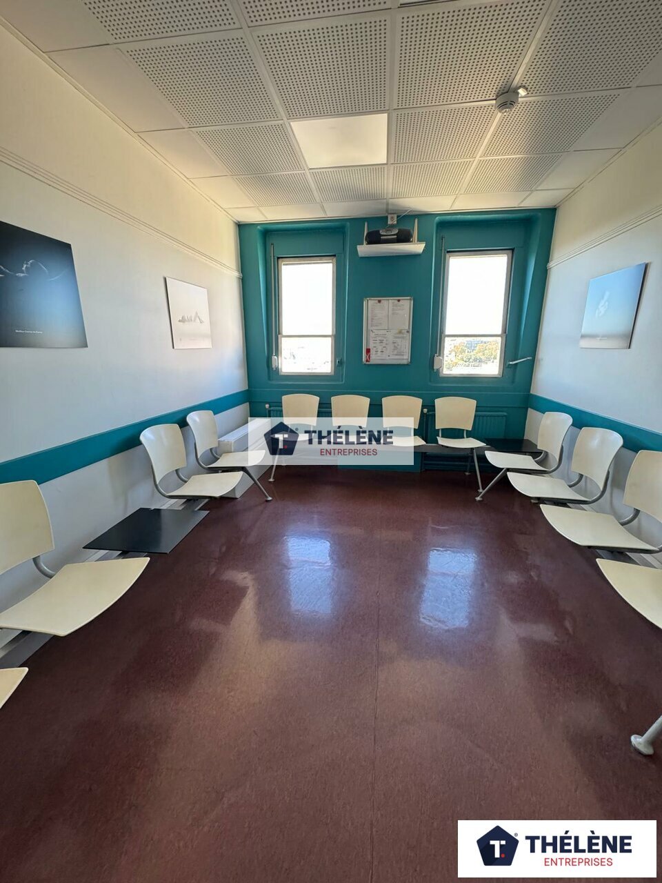 Les bureaux sont lumineux et répartis comme suit : entrée avec espace d'accueil, 11 bureaux cloisonnés, 2 salles d'attentes, sanitaires et 2 réserves.