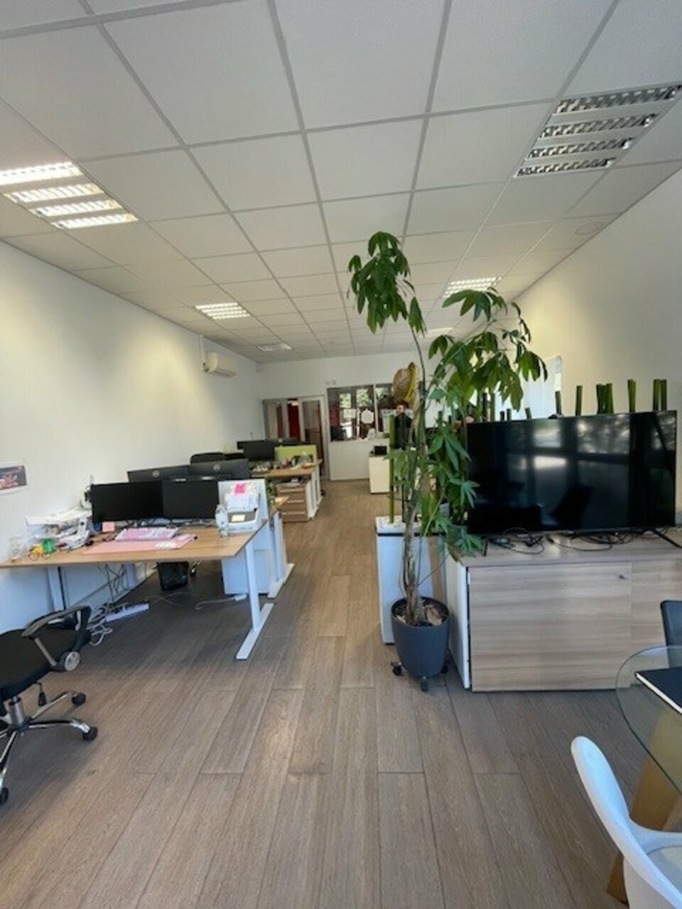 A louer local d'activité d'environ 150 m² composé d'une partie stockage avec porte sectionnelle et bureaux, climatisés, avec sanitaires privatifs, 2 places de parkings.