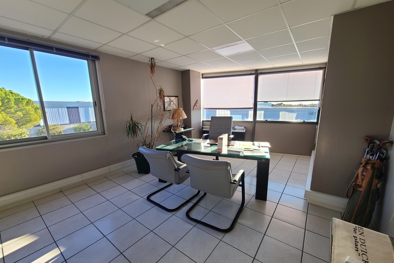 Situé dans une zone d'activité à 5 min de Béziers, ensemble immobilier comprenant 2 bâtiments d'activité avec dépôts, bureaux et showroom, bénéficiant d'une belle visibilité et d'un accès direct à l'A75, comprenant.