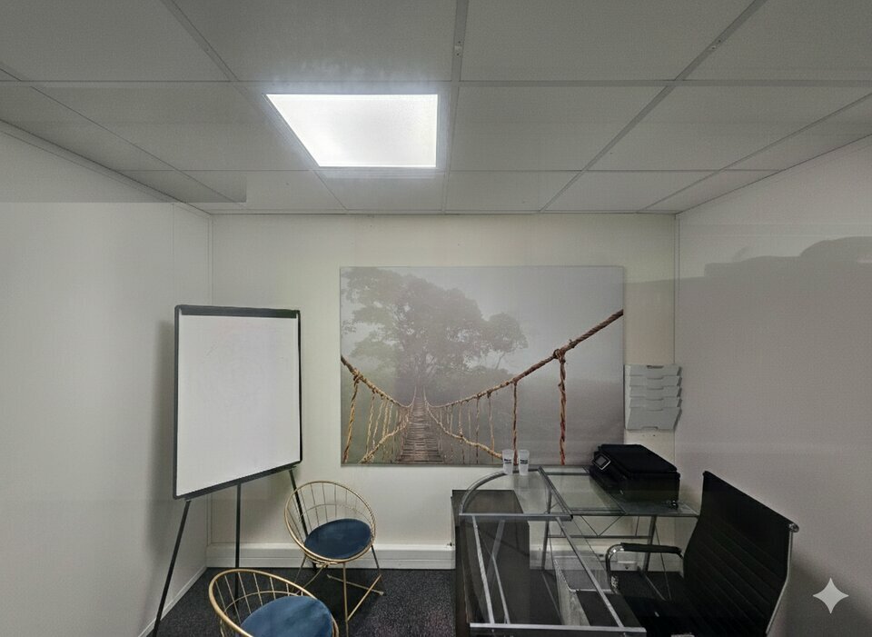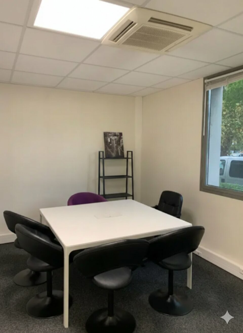 Cloisonné en 12 bureaux, climatisation réversible, belle luminosité. Deux places de parking (intérieur/extérieur) sont liées au lot.