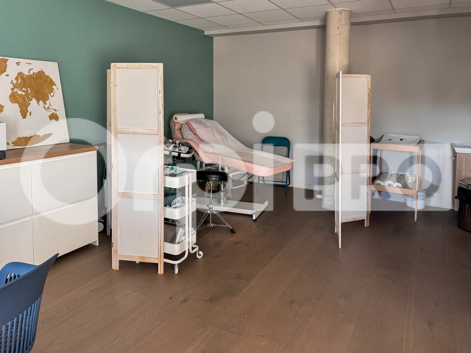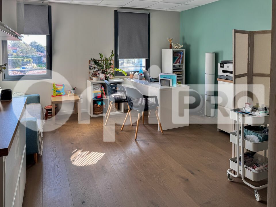 Ce bureau de 47 m², entièrement climatisé, se situe au premier étage d'un immeuble avec ascenseur. L'agencement actuel comprend une entrée pouvant servir de salle d'attente, un espace principal de type open-space ainsi qu'un second bureau individuel fermé. Le local est équipé d'une kitchenette (avec micro-ondes) et d'un WC privatif. Ce bien est accessible à toute activité de bureau, de service, ainsi qu'aux professions médicales ou paramédicales. À noter que le propriétaire autorise la sous-location.