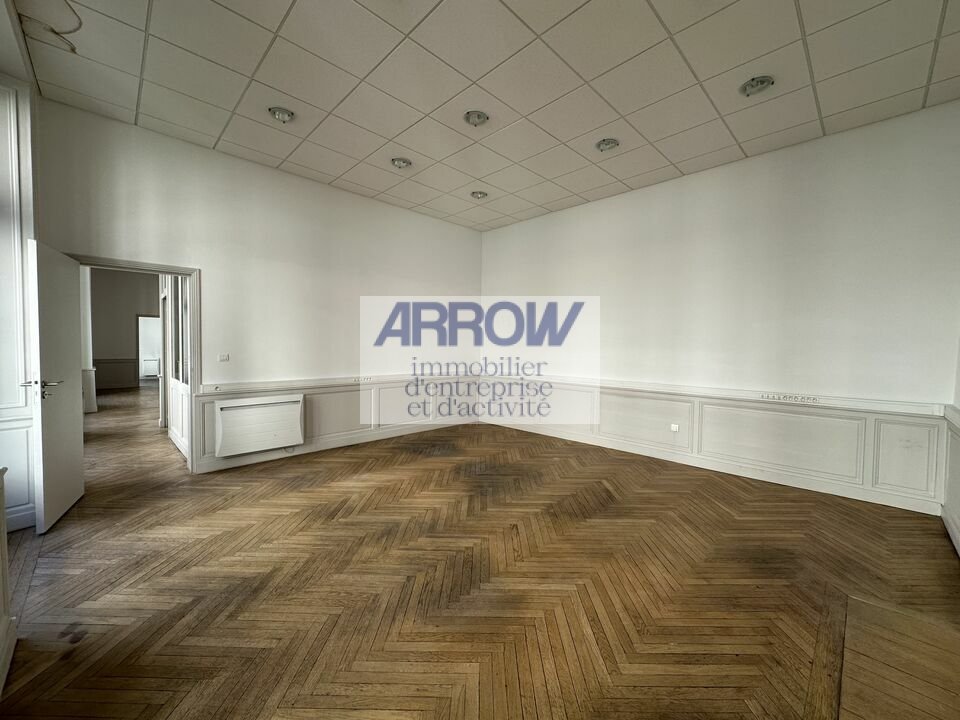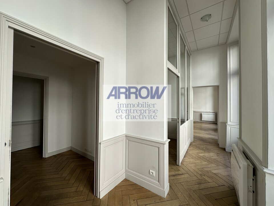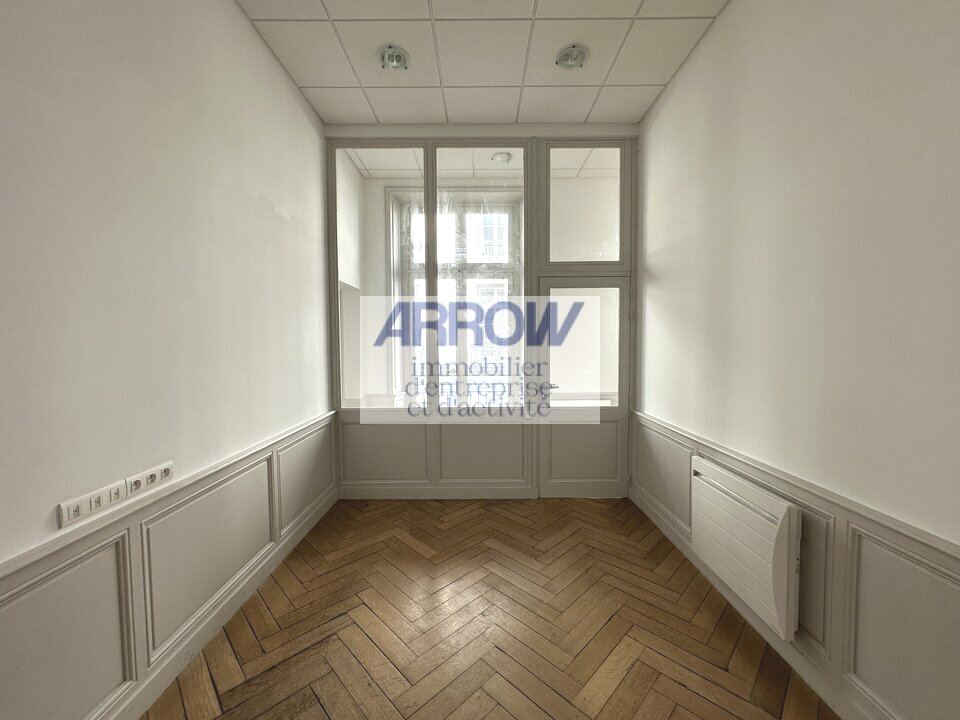 La surface est composé de 2 beaux bureaux, espace accueil, kitchenette, archive et sanitaire. Le plateau bénéficie de belles prestations : parquet ancien et belle hauteur sous plafond.