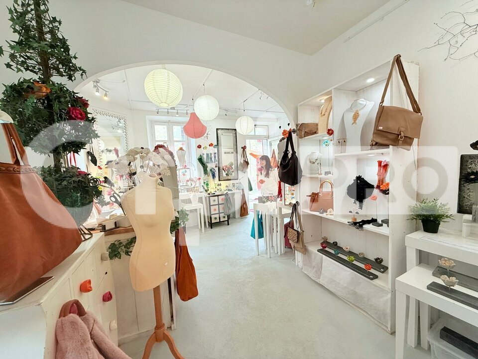 Le bien se compose, au rez-de-chaussée, d'un espace commercial comprenant une grande pièce à usage de magasin, complétée à l'arrière par un coin cuisine donnant accès à une petite cour privative fermée.