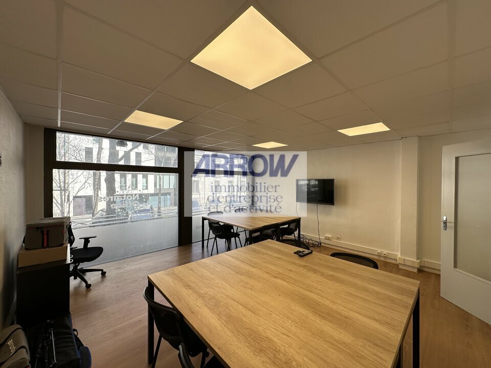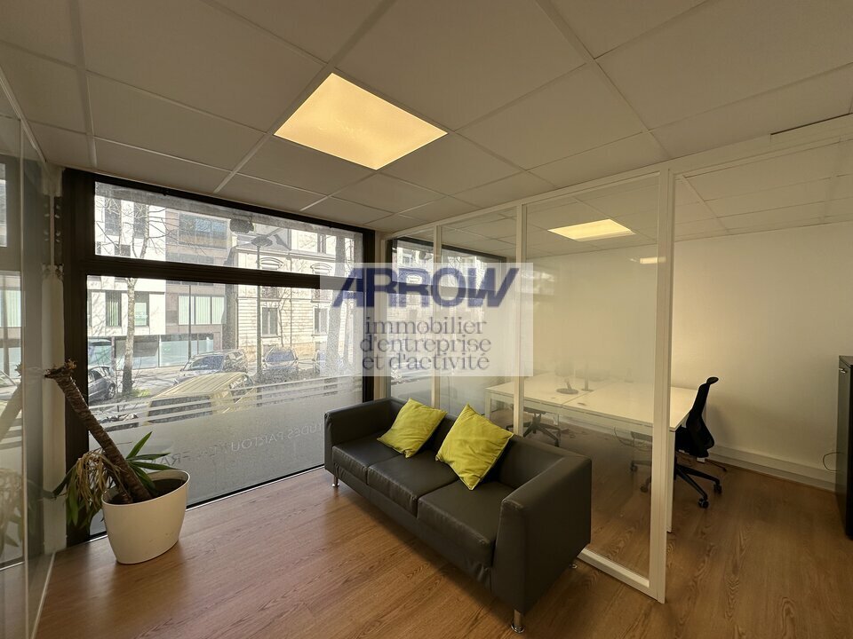 Ce plateau traversant rue/jardin, situé au 1er étage et d'une surface de 110 m², se compose d'un espace d'accueil, de deux bureaux, de deux open-spaces, d'un local archives/stockage, d'un espace tisanerie ainsi que de deux sanitaires.