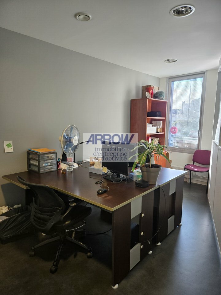 Récente et en très bon état, cette surface se compose actuellement d'un espace d'accueil avec salle d'attente, d'au moins quatre bureaux fermés dont un plus spacieux, d'un open space lumineux pouvant être cloisonné, d'une cuisine aménagée avec point d'eau ainsi que d'un espace de rangement/archivage.