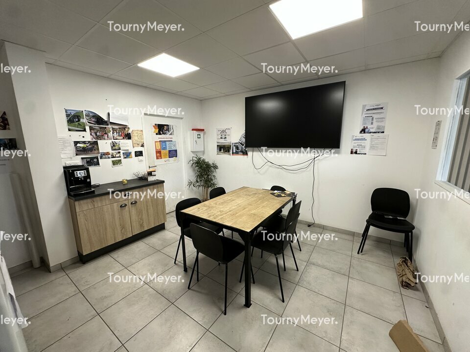 Tourny Meyer vous propose ce bâtiment prêt à l'emploi. Les aménagements intérieurs offrent un cadre de travail confortable et fonctionnel, comprenant plusieurs bureaux et espaces ouverts, deux cuisines, des sanitaires avec douches, ainsi qu'un système de climatisation.