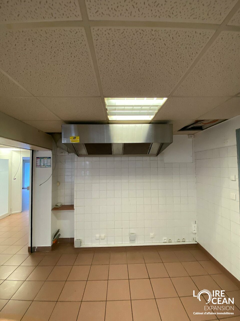 Le local comprend un open space avec extraction existante, un bureau indépendant, une salle de repos, une salle d'archives ainsi que des sanitaires avec douches. Un rideau métallique permet de séparer la partie cuisine de l'espace bureaux.