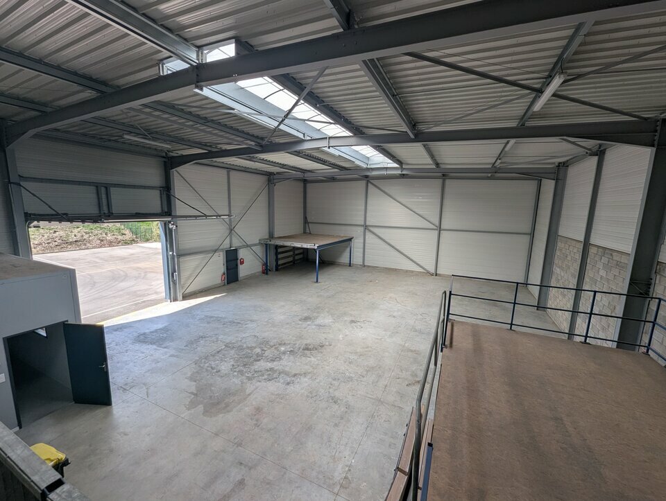 Le local se compose d'une surface d'activité d'environ 431 m², d'un espace bureau, d'un sanitaire et de deux mezzanines offrant des surfaces de stockage supplémentaires.