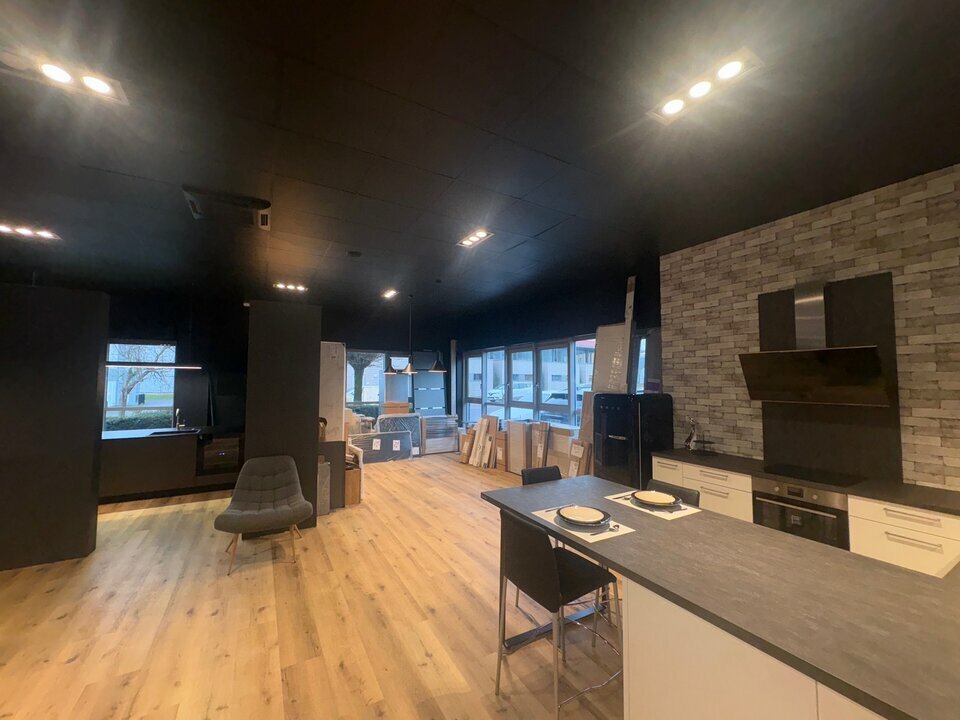Dans un ensemble plus vaste, avec vaste parking, très belle cellule commerciale de 280 m², avec vitrines, sol BAP, faux plafonds cadrettes avec luminaires, climatisation réversible, réserve, un bloc sanitaire.
