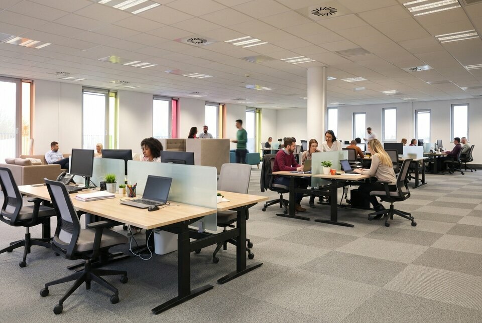 Les plateaux sont déjà partiellement cloisonnés avec de belles cloisons vitrées.