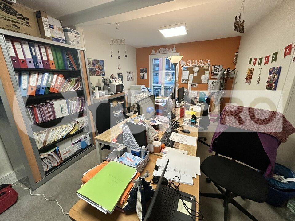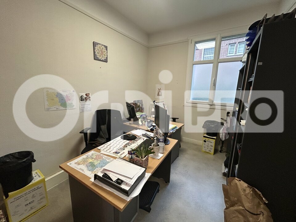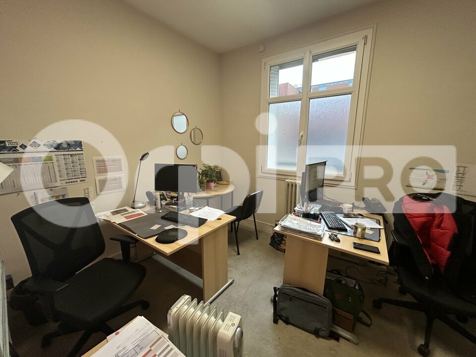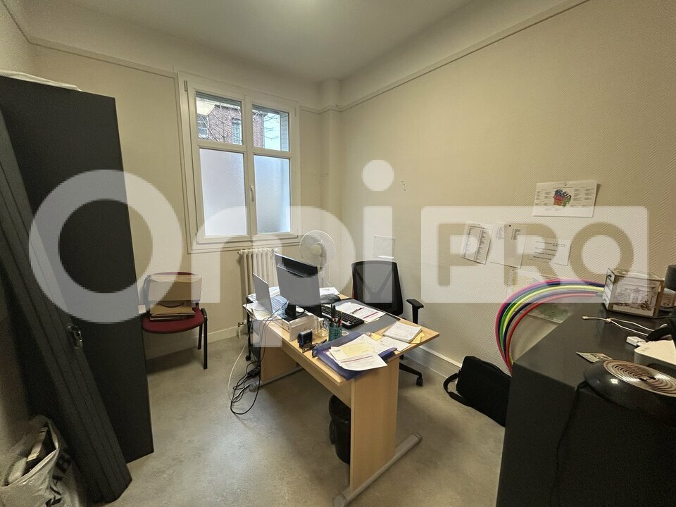 Dans un immeuble bourgeois, Local professionnel en RDC- Bureaux d'une surface d'environ 176 m² offrant 6 bureaux, un grand open space de 47 m², cuisine, WC H-F. Une grande cave de 30 m² pouvant servir de local à archives.