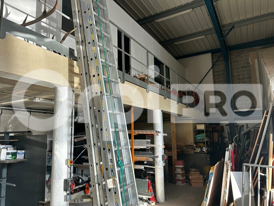 A louer local activité avec bureaux sur la zone du Champs Dolent comprenant des bureaux avec espace cuisine, SDE, sanitaire, local activité de 190 m² avec porte sectionnelle, bureaux d'accompagnement en mezzanine.