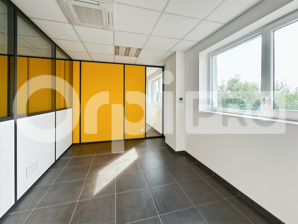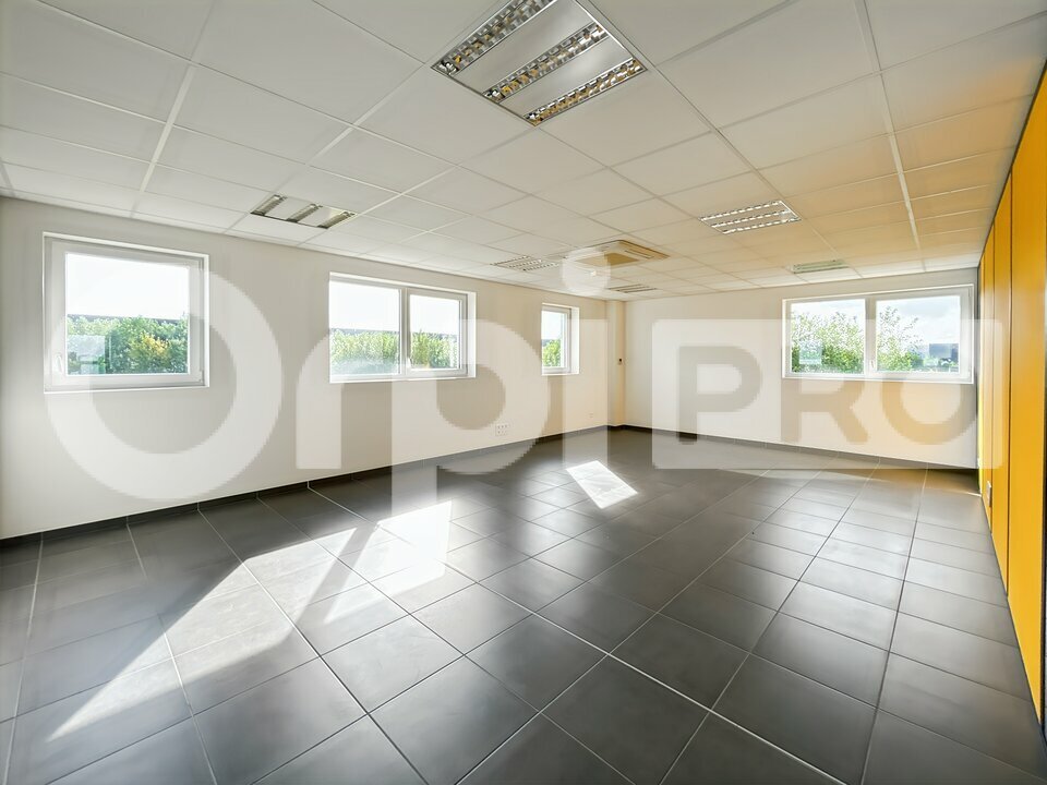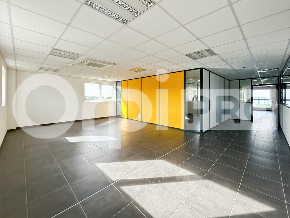 Le premier étage est prêt à accueillir votre entreprise : un ensemble de bureaux spacieux y est disponible à la location, complété par une salle de repos et des sanitaires.