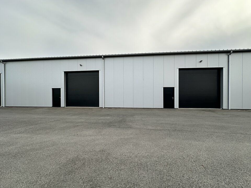 Ce local est équipé d'une grande porte sectionnelle motorisée et bénéficie d'un grand parking entièrement clôturé et fermé par un portail électrique