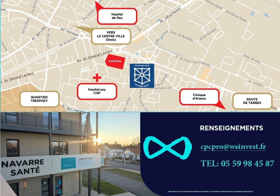 🔹 Un environnement santé structurantBénéficiez de tarifs préférentiels grâce à la création de la MSP NAVARRE SANTÉ (Maison de Santé Pluri-Professionnelle), favorisant les synergies entre professionnels et renforçant l'attractivité du site.