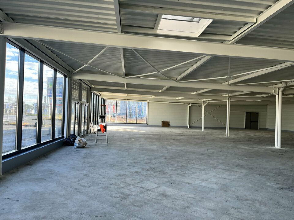 Locaux commerciaux livrés bruts de béton, fluides en attente.