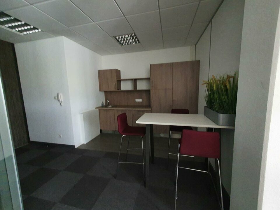 Le lot de 100 m² est aménagé en open-space. Il bénéficie d'un accès à une terrasse. Le lot de 80 m² est cloisonné : un bureau, une salle de réunion, un open-space et un espace cuisine. Possibilité de louer le lot meublé.