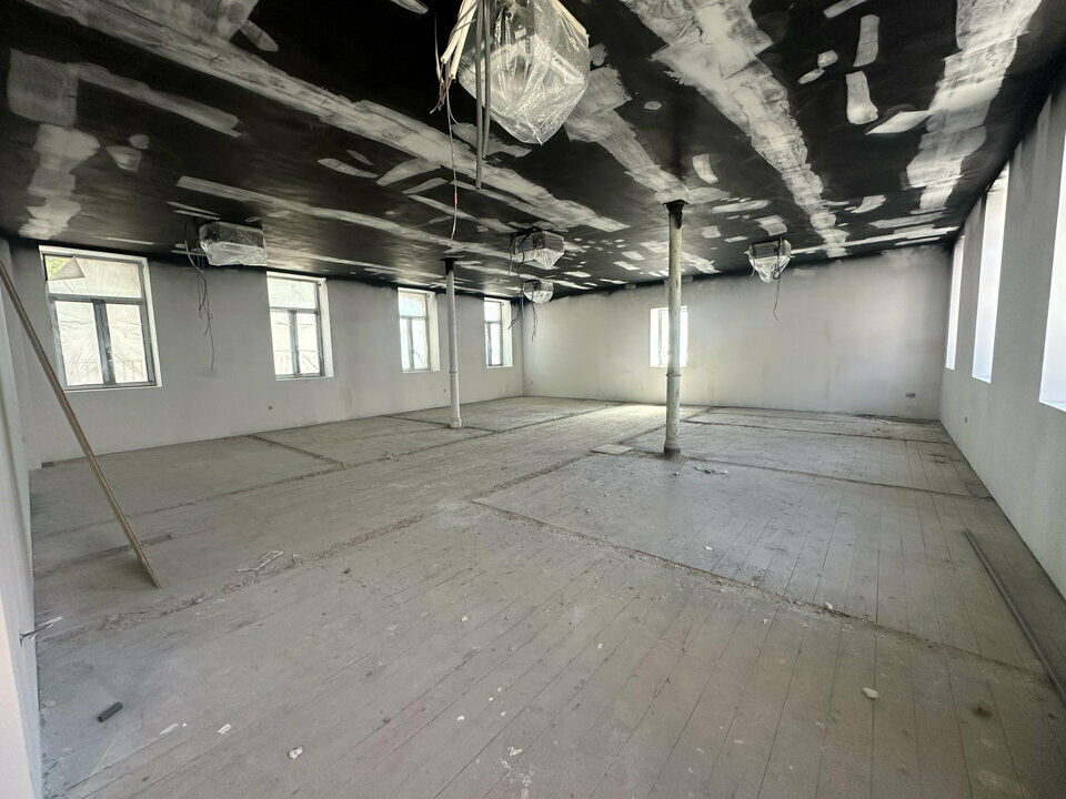 Sols moquettes, murs peints, faux-plafonds acoustiques avec pavés LED