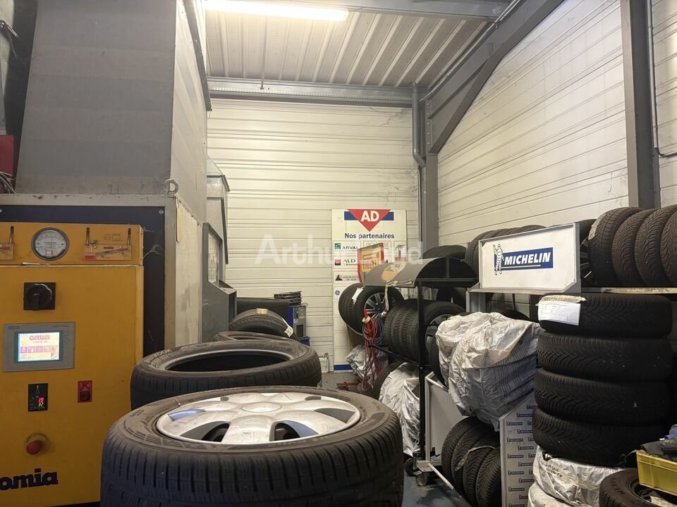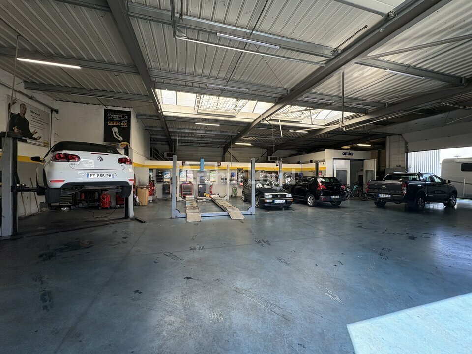 Un atelier de mécanique, pneus et carrosserie disposant de 3 portes sectionnelles. Hauteur sous bac 5 m, chauffage gaz