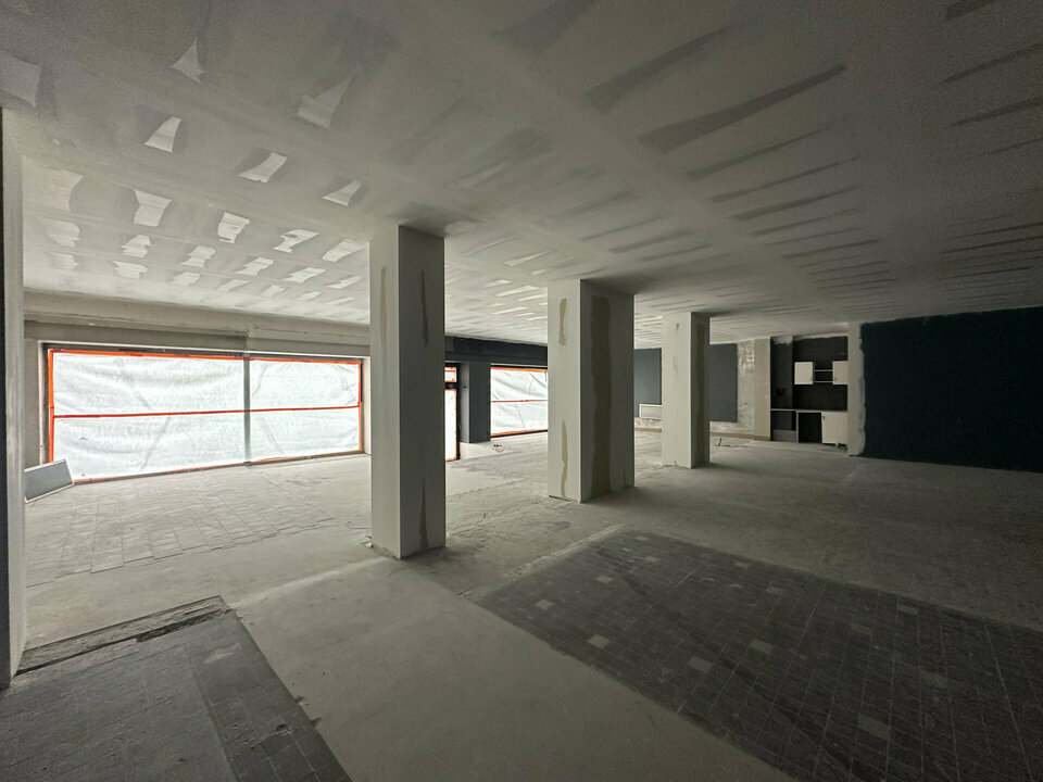 Le local est livré brut de béton, avec sanitaires déjà installés, permettant un aménagement sur mesure en bureaux, showroom.