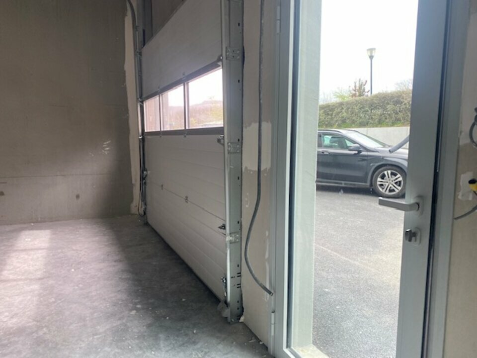 Local artisanal à vendre 287 m² avec porte sectionnelle, grande hauteur, 69760 Porte de Lyon , Techlid, le locla est aussi équipé e fenetres et porte de service pour un accès directe à une zone de bureaux qui pourrait être aménagée.