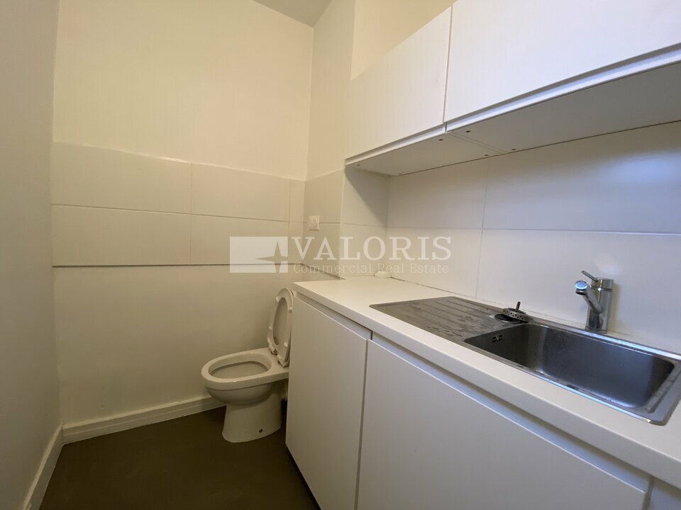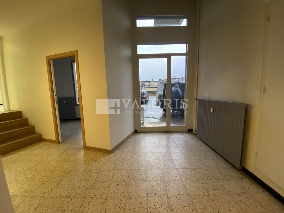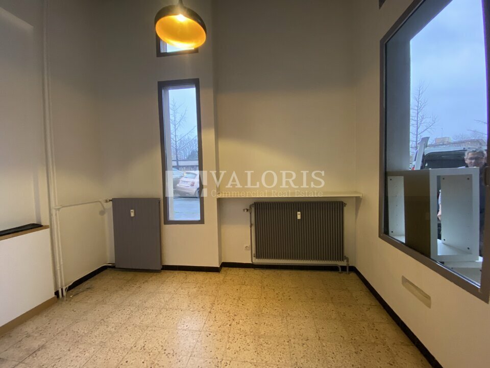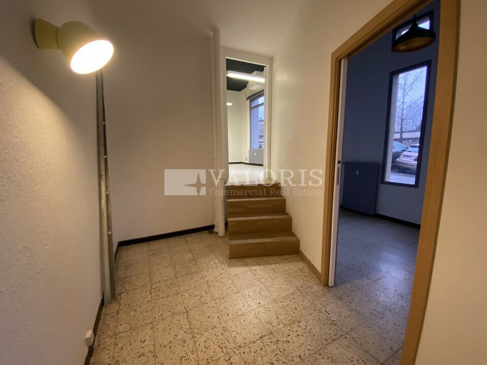 L'espace en rez-de-chaussée et en angle de rue se compose de 2 bureaux cloisonnés, d'une salle de réunion et de sanitaires.