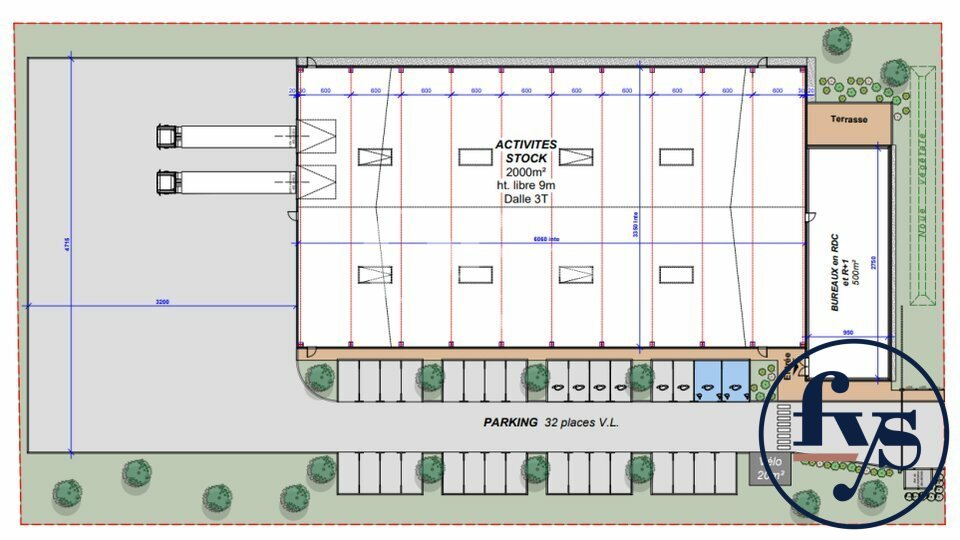 OFYS vous propose à la vente un bâtiment indépendant de 2500 m² sur son terrain de 6637 m² et 32 places de stationnement.