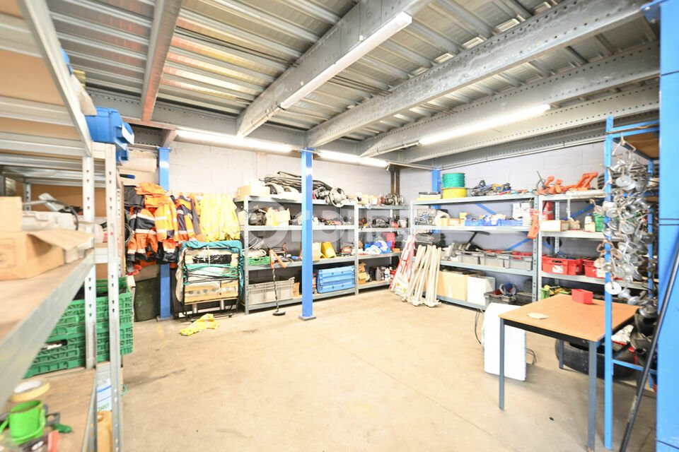 L'atelier est équipé d'une grande porte sectionnelle de 4,50 m (H) x 4,50 m (L), d'une réserve pour l'outillage, ainsi que d'un bureau de production. Une belle hauteur sous faîtage de 6,70 m vous permettra de stocker sur racks.