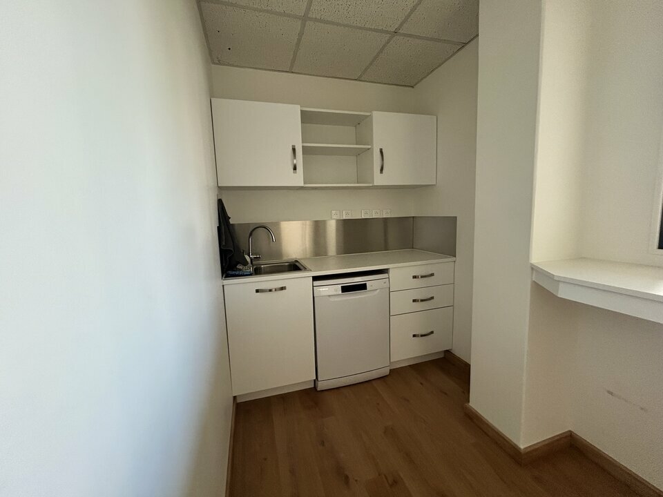 Dans immeuble tertiaire, bureaux de 97 m² entièrement rénovés composés d'un accueil, 4 bureaux, une cuisine, une pièce technique, et sanitaires.