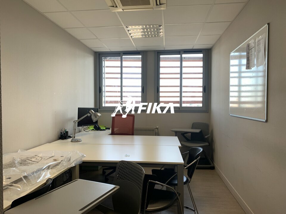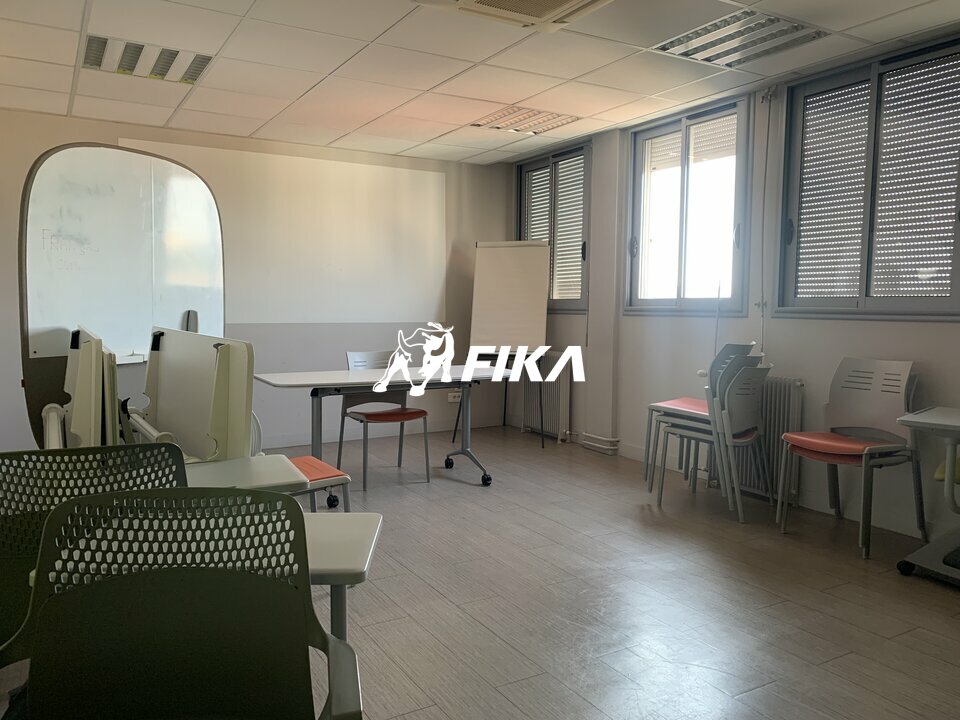 Le plateau est en R+5. Déjà cloisonné il propose un espace d'entrée, un accueil qui peut faire office de bureaux, 5 bureaux entre 12 et 15m² ainsi que deux grandes salles de réunion de 27 et 30m². Il bénéficie de ses sanitaires privatifs dont PMR. Il a été classé ERP grâce à son issue de secours.