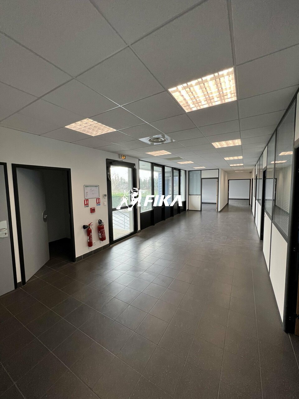 -Partie bureaux: 665 m² avec climatisation réversible, faux plafonds, baie de brassage. Cette partie est en très bon état d'usage.