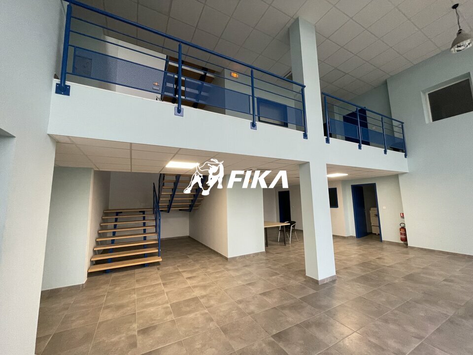 Le local se compose d'une partie dépôt de 625 m² avec une belle hauteur sous plafond de 10 m, et une grande porte sectionnelle. La partie bureaux est de 242 m² en RDC avec sanitaires, open space et climatisation.