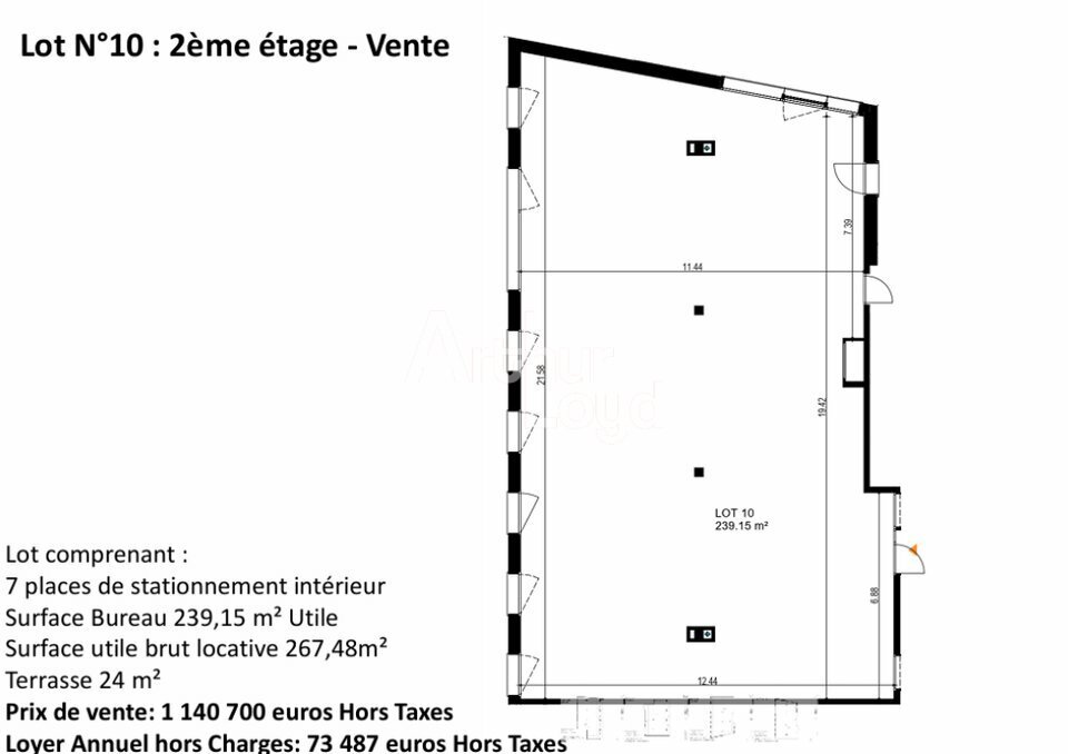 Plateau de bureaux situé une deuxième étage d'un immeuble neuf de standing d'une superficie de 239,15 m² ( surface pondérée 267,48 m²).