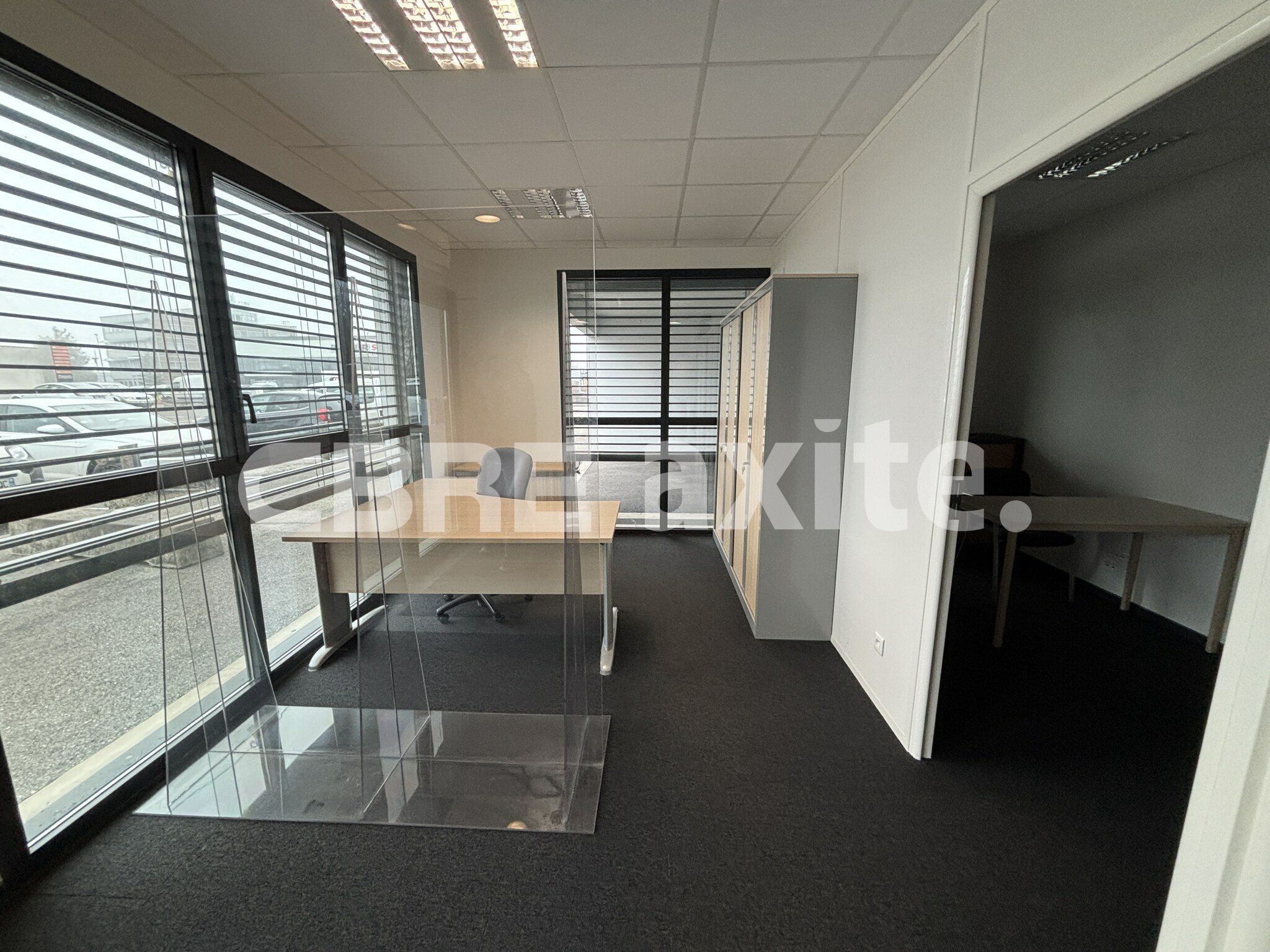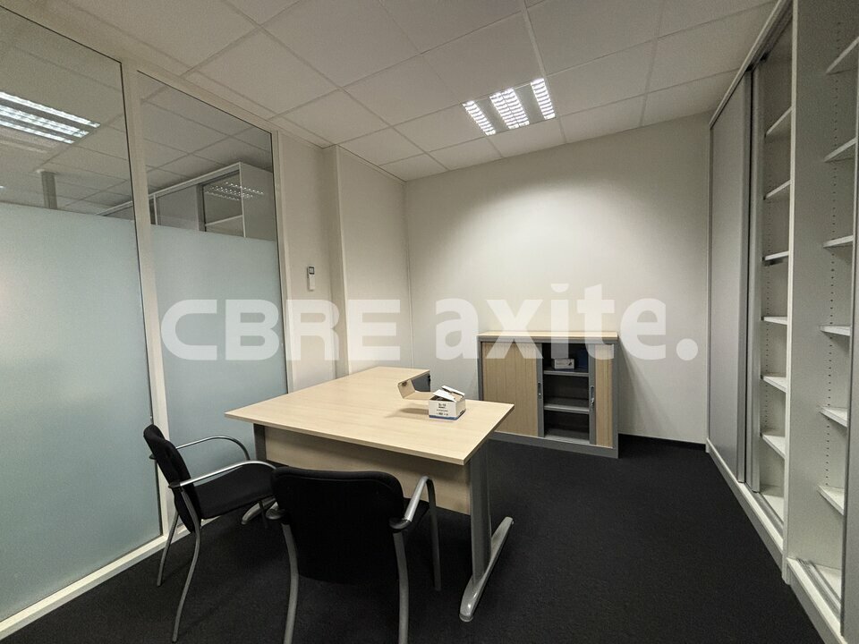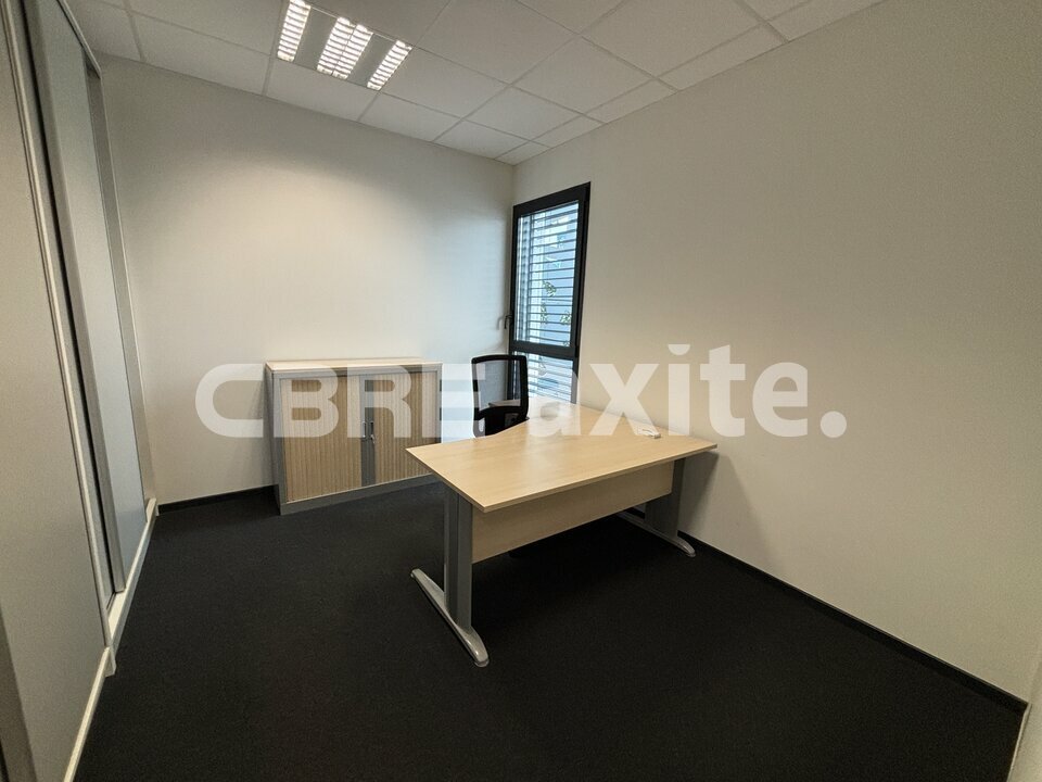 Situé au sein d'un bâtiment récent dans un parc d'activités économiques (PAE), ce local se compose au RDC d'un espace accueil, de 2 bureaux cloisonnés, d'un petit open-space, d'un WC PMR, d'une kitchenette ainsi que d'un local borgne de rangement.