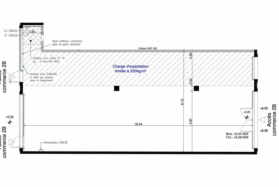 Local livré brut, prêt à aménager selon concept d'exploitation.