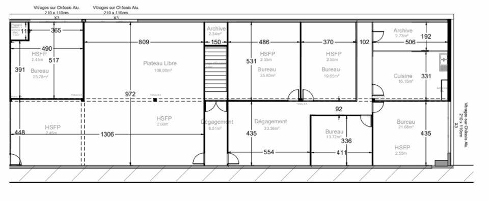 A louer bureaux d'une superficie de 300 m², situés à l'étage sans ascenseur, répartis comme suit :