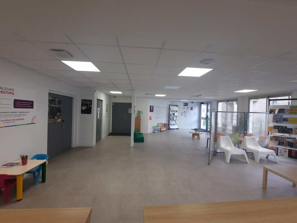 - un grand accueil ouvert sur l'accès principal avec banque d'accueil, une zone d'attente, un sanitaire PMR, un espace administratif ouvert et un bureau individuel.