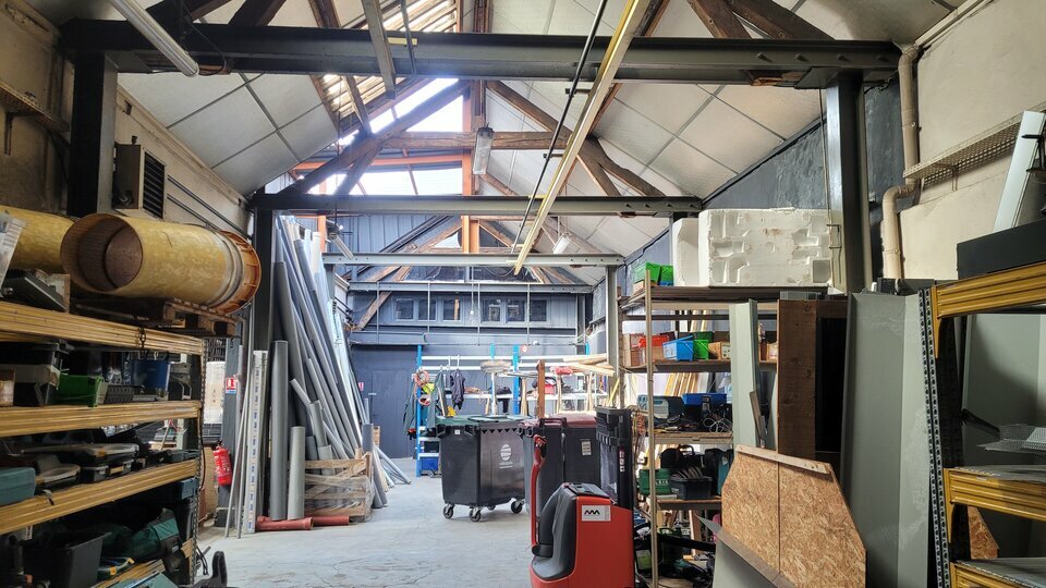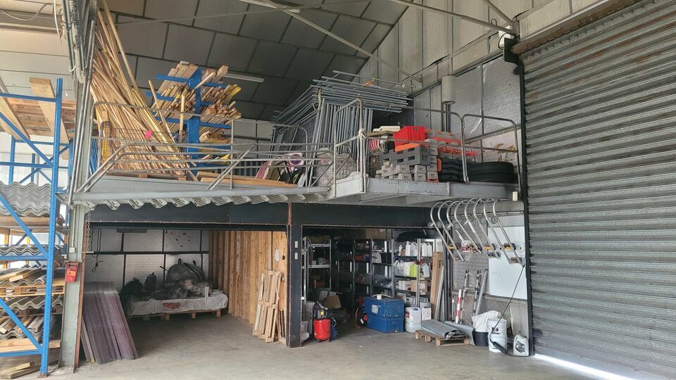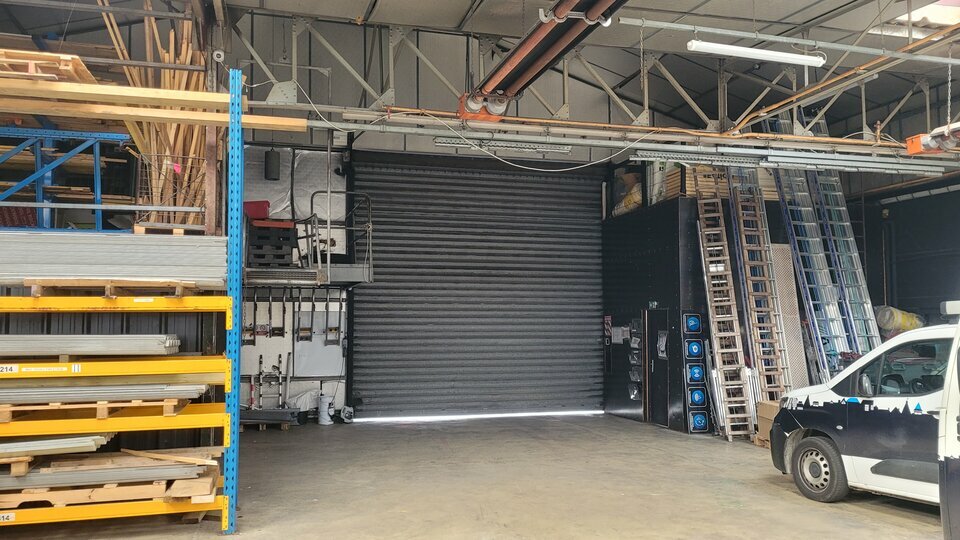 - une partie atelier-entrepôt d'environ 647 m², composée d'un grand local de stockage de 495 m² + un autre espace de 126 m² communicant + 2 mezzanines de stockage (non comptabilisées dans la surface).