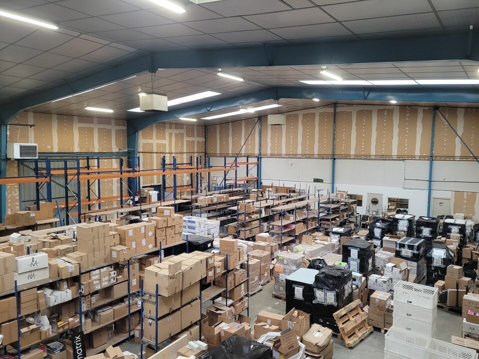 2/ A la suite, un dépôt d'environ 645 m², construit en bardage simple peau et doublage placoplatre, charpente métallique, toiture bac acier et isolation par dalles.