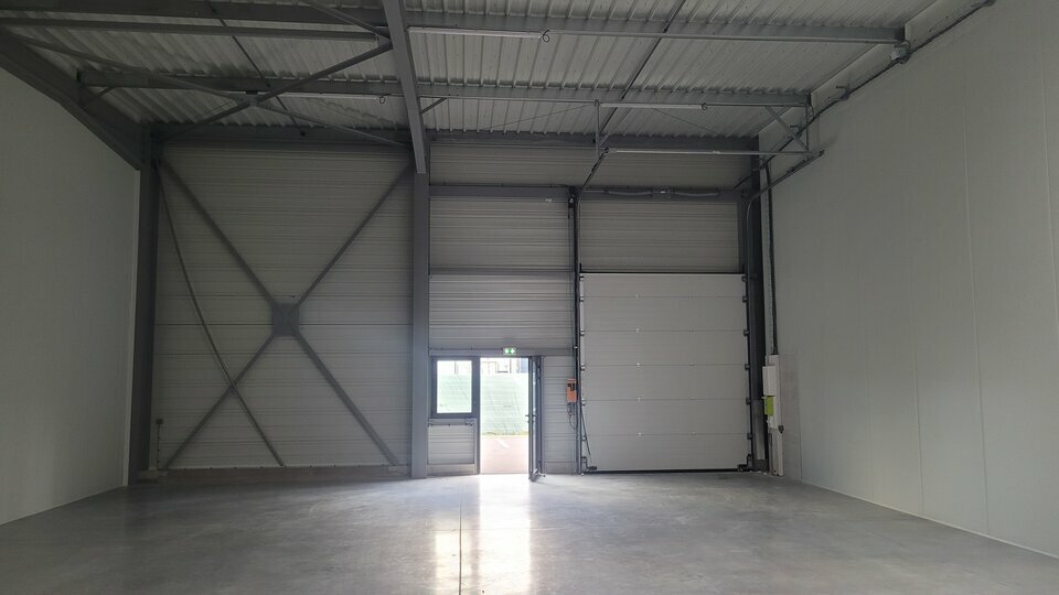 * Construite en bardage double peau, charpente métallique, toiture bac acier isolé avec étanchéité et dalle béton (résistance de 1,5 T /m²).