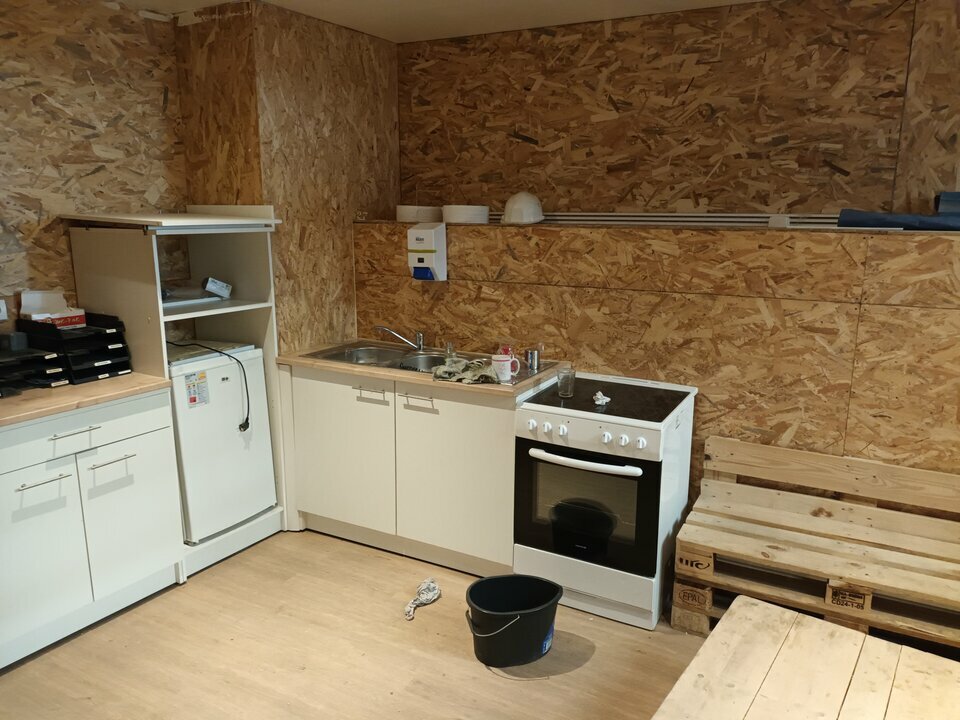 Des locaux sociaux (salle de pause avec kitchenette, douche et sanitaires) d'environ 28 m² sont disponibles en commun avec le locataire actuel.