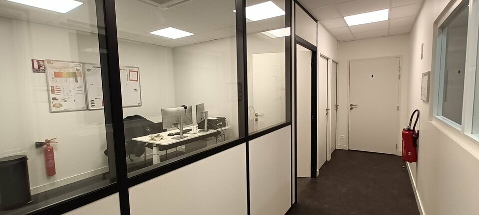 - une partie bureaux de 94 m² composé d'un espace accueil, de 2 bureaux, d'un réfectoire, de 2 vestiaires et de 2 sanitaires.
