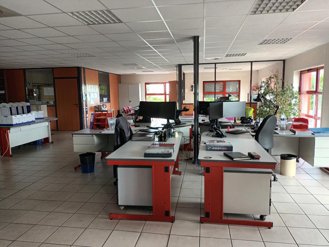 La partie bureaux et locaux sociaux, d'environ 290 m², est constituée de 2 open-space, d'un bureau, d'un réfectoire et de 2 sanitaires.