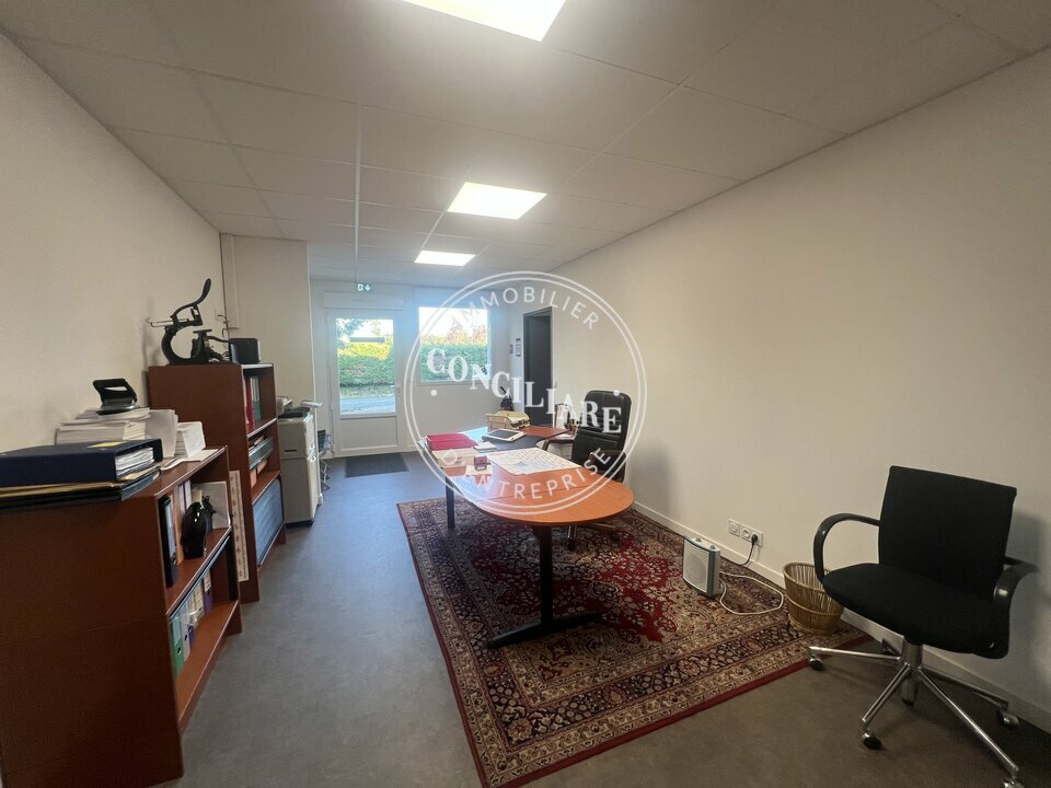 1 grande porte sectionnelle, des bureaux lumineux et économes en énergie, projecteurs extérieurs, système d'extraction d'air, triphasé, accès aux poids lourds par un quai commun, parking visiteur et parking gros porteurs.